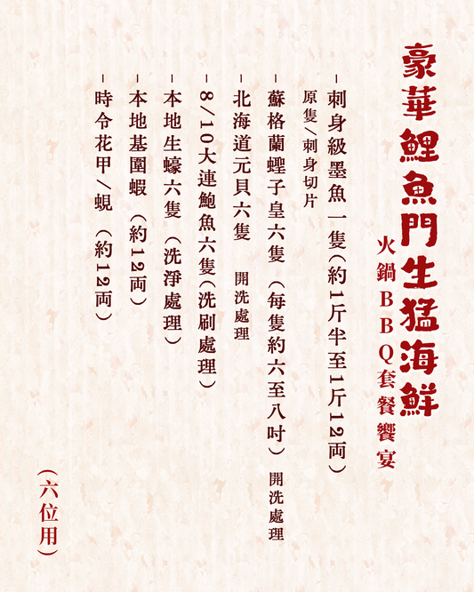 豪華鯉魚門生猛海鮮火鍋燒烤套餐盛宴 (4位用)